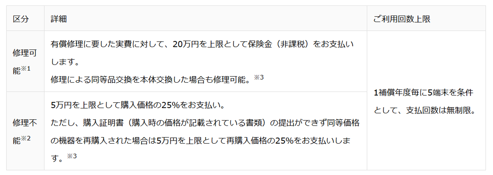 さらに特典としてお客様が使用している通信端末機器が故障した場合に補償が受けられます